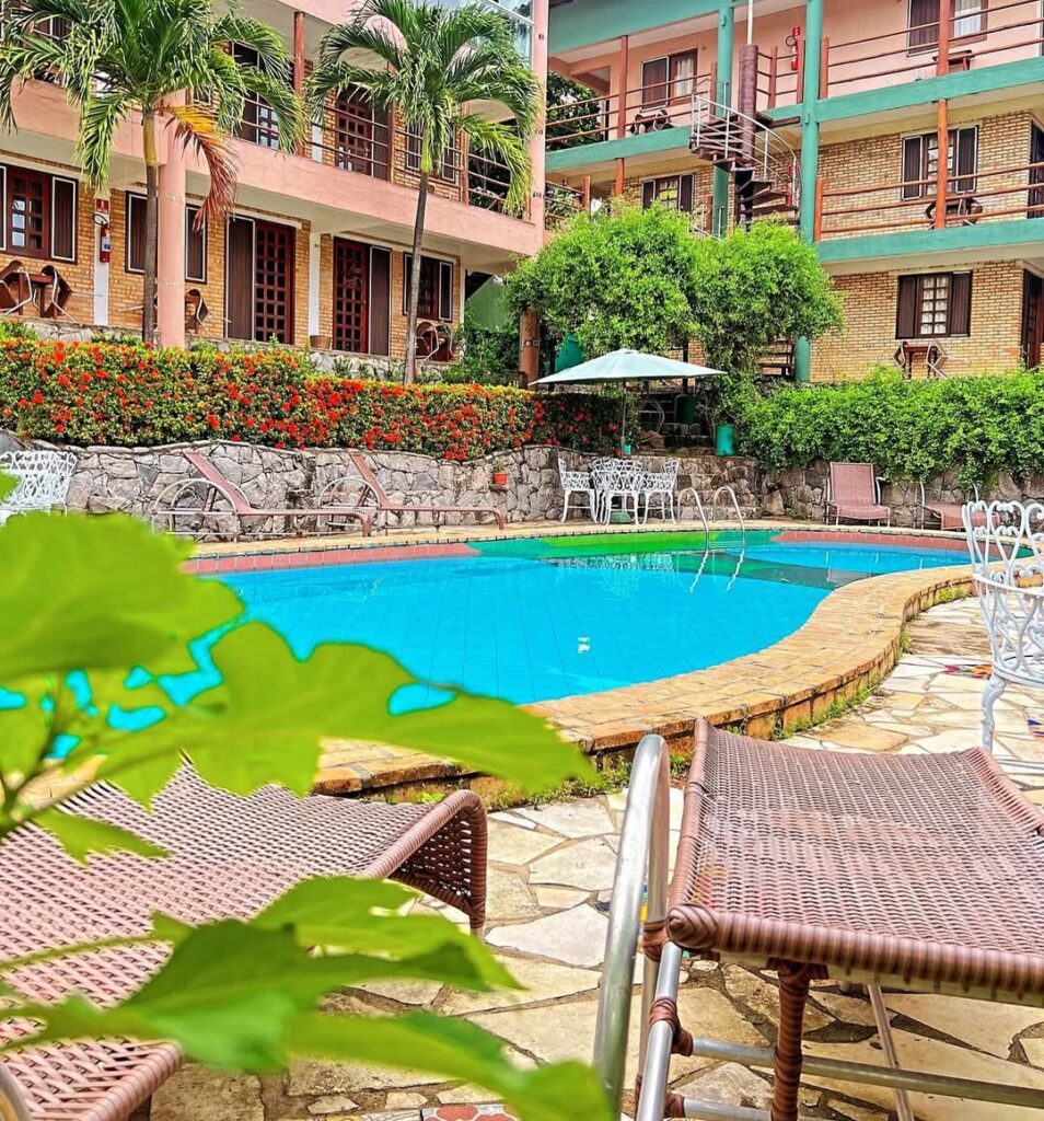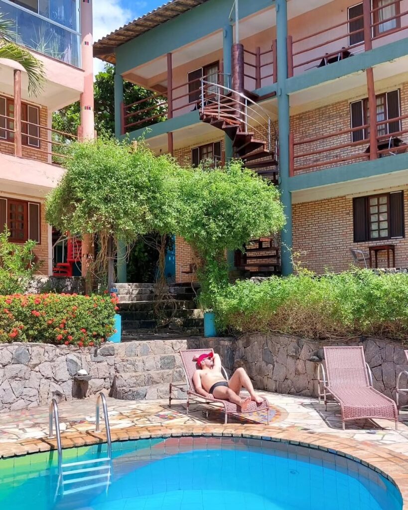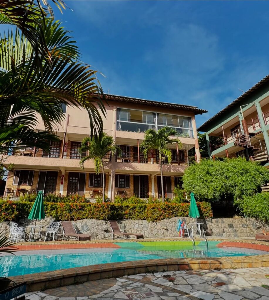 A Pousada está inserida em uma bela área verde, típica de um clima tropical e conta com 25 apartamentos arejados, com terraço e vista para a piscina e jardins, tendo alguns com vista para o mar.